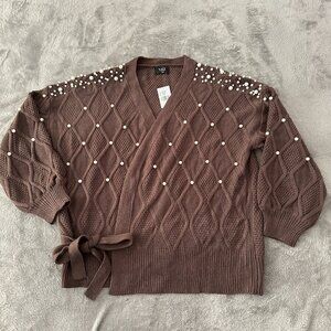 NWT Vici Pearl Brown Wrap Sweater Women's LARGE