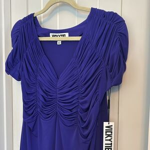 NWT Vicky Tiel Ruched Cocktail Dress Royal Purple Jersey Stretch Size Large