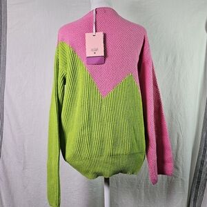 NWT Victor Glemaud Wool Blend Crewneck Pullover Sweater Pink/Green SZ S