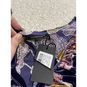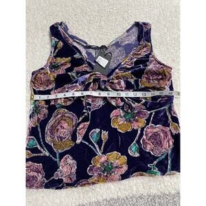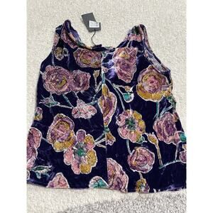 NWT Victor Victoria women's size L front knot sleeveless purple velvet blouse