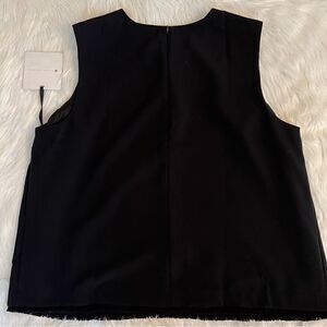 NWT Victoria Beckham For Target Top. Black. Sleeveless. Size 2X. Zip Back. Plus size. Fringe bottom. Length from shoulder to bottom is 27”. Armpit to armpit is 25”. 63% polyester 30% rayon 7% spandex.