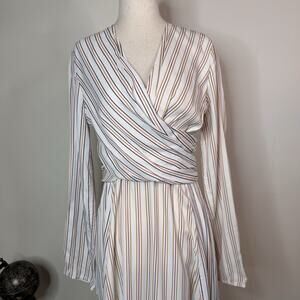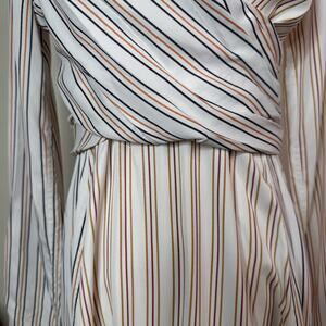 NWT Victoria Beckham Midi Dress Fluid Satin Stripe Draped Size 8 $2179 Fit Flare