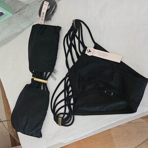 NWT Victoria Secret Black Strappy Bikini Set Top Size M Bottoms size S