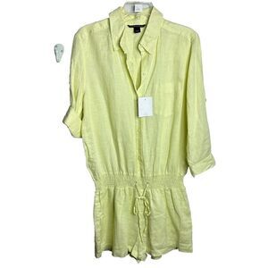NWT Victoria Secret Romper 100% Linen Lemon Yellow Roll 3/4 Sleeves Size 12