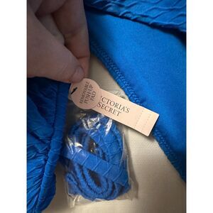NWT Victoria Secret Twist Push-Up Bandeau Top Size 38D Matching Bottoms Size XXL Blue