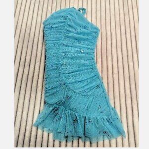 NWT Victoria Secret sexy little things Blue Sequin glitter Top Med Ruffle bottom