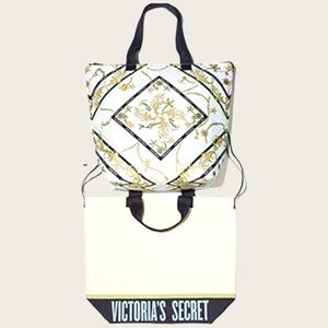 Victoria's Secret 2-in-1 Tote Bag set includes VS tote bag, an inner Removable Cooler Bag with zip close top PLUS packable rolled with handle blanket for beach, pool, park