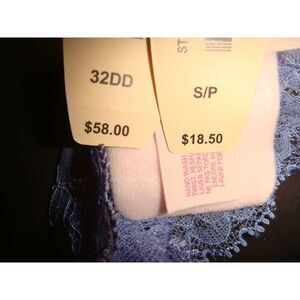 NWT Victoria's Secret 32DD BRA SET S Panty Iridescent BLUE Lavender white lace
