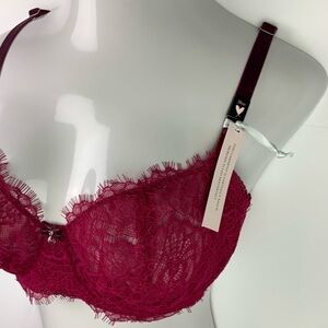 NWT Victoria’s Secret 38DD Wicked Unlined Velvet Lace Balconette Bra Red