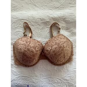NWT Victorias Secret Beige Floral Lace Padded lined Demi Pushup Bra Size 38DD