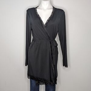 NWT Victoria's Secret Black Lace Trim Lightweight Long Sleeve Robe M/L.