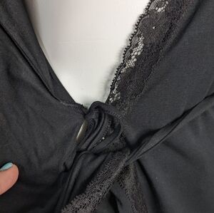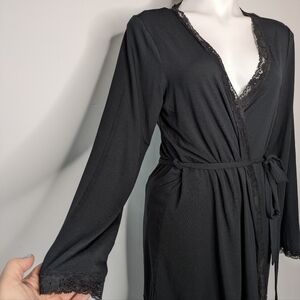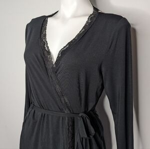 NWT Victoria's Secret Black Lace Trim Lightweight Long Sleeve Robe M/L