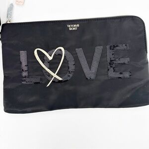 Victoria's Secret Bling Sequin LOVE Clutch Zippered Pouch Wristlet Set.
