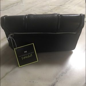 NWT Victoria’s Secret embossed black faux leather & animal print bag with zipper