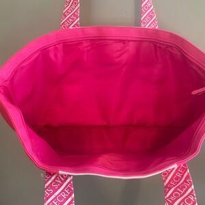NWT Victoria's Secret Colorblock Logo Weekender Beach Canvas Tote Bag Pink Red