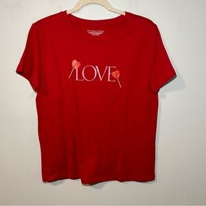 NWT Victoria’s Secret Corron Red “Love” Heart Print Short Sleeve T-Shirt Size S