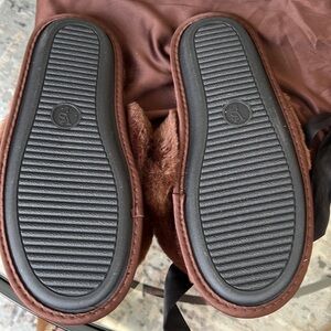 NEVER WORN. Cloth Bag included. Brown Faux Fur Slides