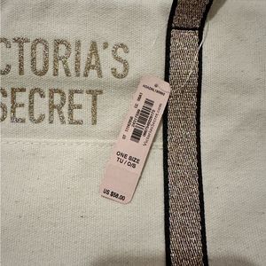 New with tags gold glitter Victoria’s Secret tote bag. Originally $58