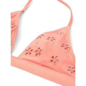 This twist on the tried-and-true triangle is universally flattering—with a wide band plus adjustable halter straps to customize your fit. Now available in a sweet, perforated eyelet fabric that evokes flirty lace.