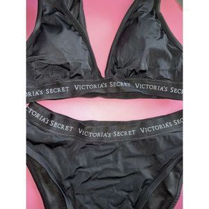 NWT Victoria's Secret M BIKINI M,L high-waist bottom BLACK gray VS logo
