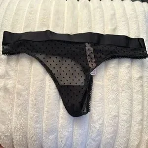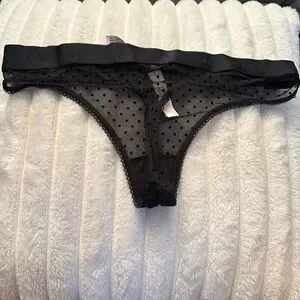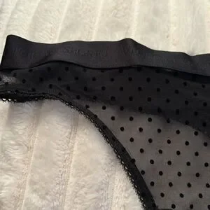 NWT Victoria’s Secret Mesh Sheer Polka Dot Black Logo Thong- Size Medium