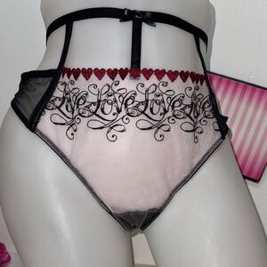 NWT Victoria’s Secret Mesh Sheer Polka Dot Black Logo Waistband Thong