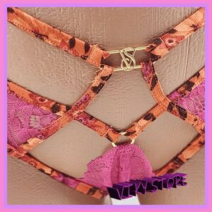 NWT Victoria's Secret Orange Pink Lace Strappy Panty Size Small