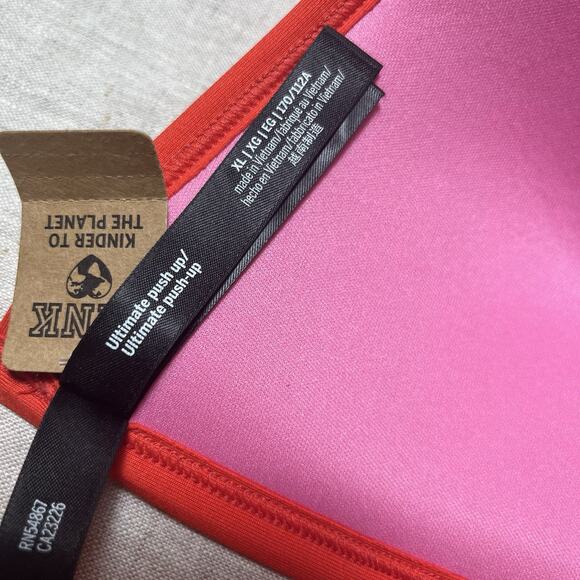 The product is a new with tag Victoria's Secret PINK Gym Swim Ultimate Push Up Racerback Red Top XL Bra. This red push up bra in size XL is designed for women and features a racerback style. It offers a supportive and flattering fit, perfect for both gym workouts and swim activities. Made by the popular brand Victoria's Secret, this bra combines stylish design with functionality to provide comfort and style for the modern woman.
