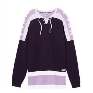(NWT) Victoria’s Secret PINK Lace-UP Varsity Graphic Crew Plum/Purple Petal, XS