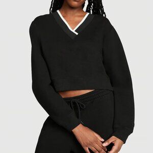 NWT Victoria's Secret PINK Premium Fleece V-Neck Pullover, Black