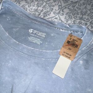 NWT Victoria’s Secret PINK ruched cinched long sleeve baby blue marble knit top size S