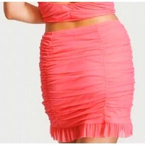 NWT Victorias Secret Pink Mesh Pleated Ruched Ruffle Stretch Mini Skirt 6