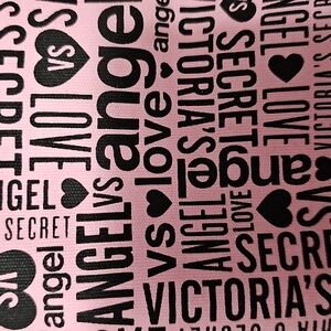 NWT This travel bag from Victoria's Secret showcases a striking pink and black color scheme, featuring a modern graphic text pattern. Its spacious design and durable fabric make it ideal for travel, combining style with practicality. Comes with cross body shoulder strap. Handle drop is approximately 3". Material is cotton / canvas and bag is fully lined. Great weekend bag, or beach bag. Super cute and durable.