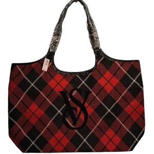 NWT Victoria's Secret Plaid Holiday Tote Bag