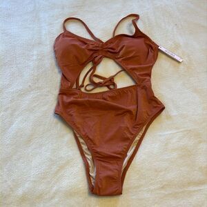 NWT Victoria's Secret Shimmery Copper Cut Out One Piece Swimsuit - Size Medium