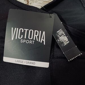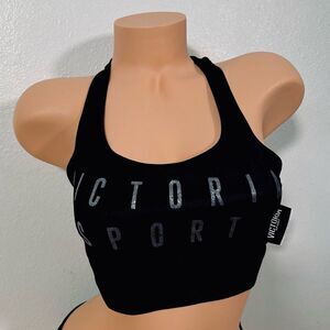 NWT Victoria’s Secret Sport Sz L Black Silver The player Racerback Sports Bra Gr