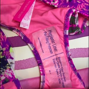 BRAND NEW 100% AUTHENTIC Victoria's Secret Swimsuit! Set includes: Push-up top (adds up to 1 size) halter top in size 34 C + bikini buttom in size Small. Condition: Brand New, never worn, without tags(as it was bought online). Color: Vibrant Purple Petal. 🚫NO LOW BALLERS!🚫
