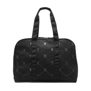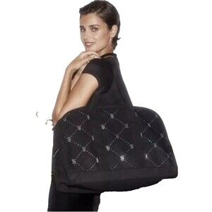 NWT Victoria's Secret VS Logo Large Weekender Black Quilted Tote Zip Duffle Bag