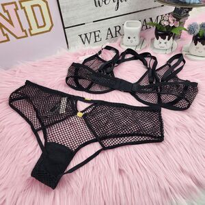 💖 NWT Victoria’s Secret Very Sexy Low Cut Demi Black Mesh M-DD Top/Large bottom