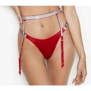 NWT Victoria's Secret Rhinestone RED Garter Belt Rhinestone Straps Shine M/L M L