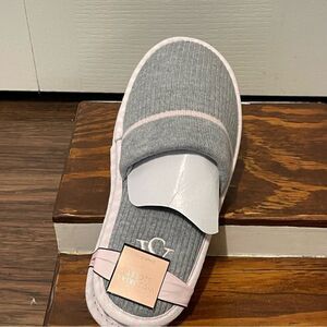 NWT Victoria’s Secret Ribbed Knit Closed Toe Slippers Gray and Pink Size Small