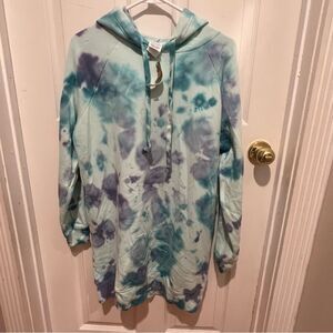 NWT Victoria's Secret PINK Fleece HOODIE Sweatshirt Dress Tie Dye XS