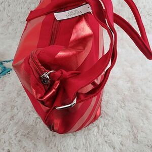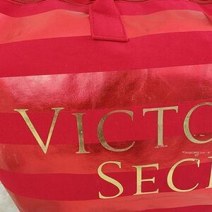 Victoria's Secret Red Striped Signature Canvas Tote Bag