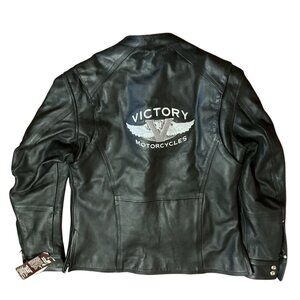 NWT Victory Motorcycles Black Leather Motorcycle Jacket Size L Flight Jacket