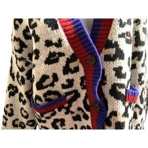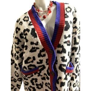 For sale is NWT Vigoss Ivory White and Black Leopard Lightweight Cardigan Sweater XL 14 16.