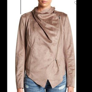 NWT Vigoss Nordstrom Womens Taupe Brown Faux Suede Motorcycle Jacket Lightweight