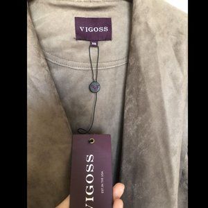 Vigoss Womens Taupe Faux Suede Lightweight Motorcycle Jacket Coat in size XSMALL. New with tags attached. The stock photos reflect the color of the jacket (my phone camera images are a bit dark). Great jacket for chilly summer nights!