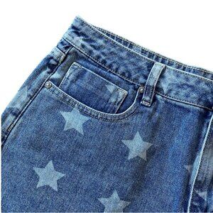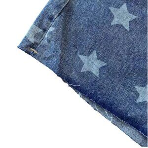Vigoss Ace High Rise Star Short. Elevate your everyday look with these star shorts! These jean shorts have a high-rise fit for comfort and style, and a star print for a unique look that pairs well with your fave t-shirts and tanks. High rise. Belt loops. 5-pocket styling. Zip fly with button closure. Raw frayed hem. Non-stretch denim with star print detail. Material: 100% cotton.