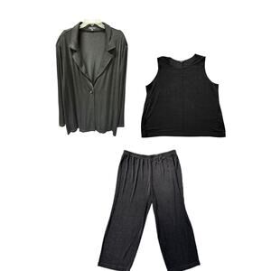 NWT Vikki Vi Plus 3X 3 Pc Black Pantsuit Pants Tank Shell Blazer Slinky Knit