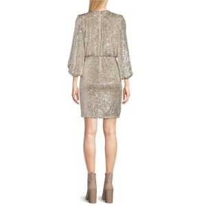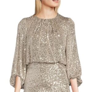 NWT Vince Camuto 3/4 Balloon Sleeve Jewel Neck Sequin Dress in Silver Sz. 2
